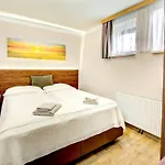 يتكوّن مكان الإقامة من الشرفة ومنطقة الجلوس، ويحتوي على الصالون، فضلاً عن وسائل الراحة الحديثة مثل جهاز التلفزيون وتلفزيون بشاشة مسطحة مع قنوات فضائية. تتميّز الشقة أيضًا بأرضيات مكسوة بالصفائح. تتوفّر أسرّة مع الوسائد الزغبية المضادة للحساسية تحت تصرف الضيوف. يشتمل الحمام على المرحاض المنفصل والدوش، كما تمّ تجهيز الحمام بمجفف الشعر وملاءات الحمام.